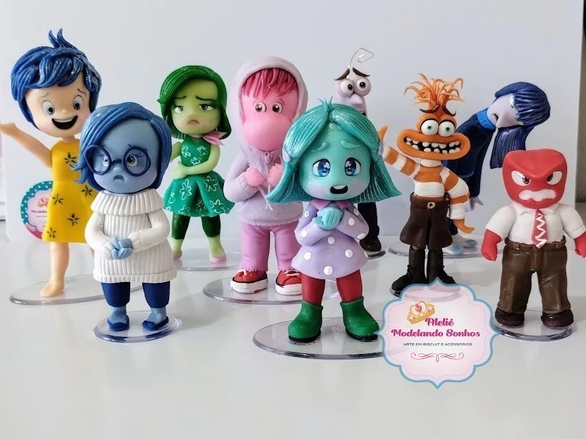09 personagens do filme divertidamente, sendo: ALEGRIA, MEDO, NOJINHO, RAIVA, TRISTEZA, INVEJA, TEDIO, ANSIEDADE, VERGONHA, ELEFANTE E RILEY.