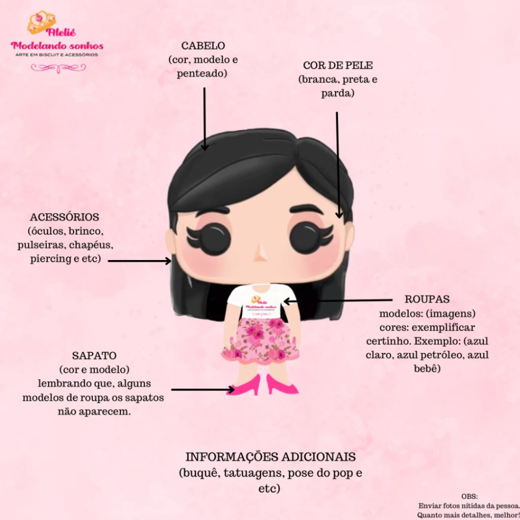 Observação: PERSONALIZAMOS CONFORME VONTADE DO CLIENTE. SOMENTE O BONECO PERSONALIZADO COM DIREITO A UM OBJETO SIMPLES (LIVRO, CELULAR, MICROFONE...), NÃO INCLUI PETS. PARA INCLUIR, GENTILEZA NOS CONSULTAR SOBRE O VALOR PARA ACRESCENTAR,